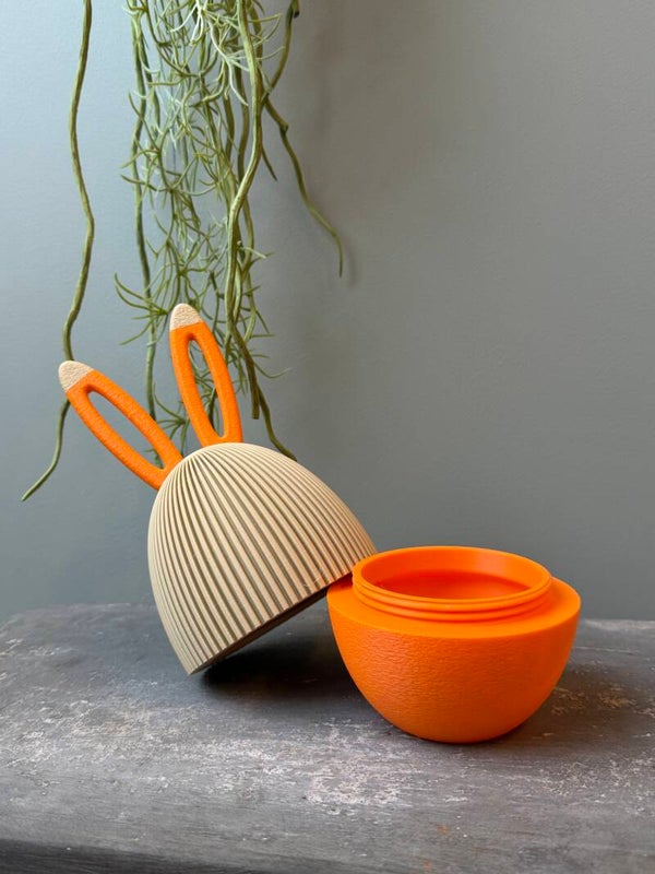 3D Geprint Opberg Paasei met Konijnenoren – Decoratief & Functioneel