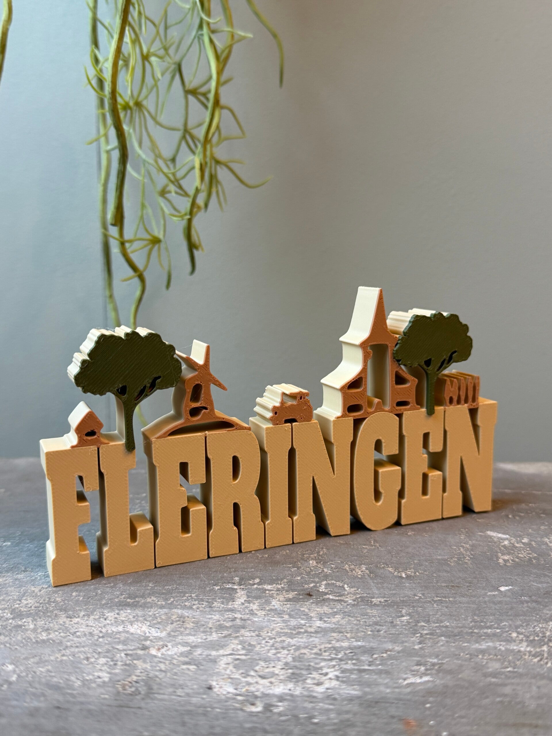 Laat je liefde voor Fleringen zien met deze prachtige 3D-geprinte Woondecoratie ‘Fleringen’. Dit decoratieve ontwerp brengt de charme van het Twentse dorp tot leven in een modern en duurzaam kunstwerk. Boven de karakteristieke letters zijn herkenbare gebouwen, bomen en details uit de skyline van Fleringen verwerkt – een ode aan de lokale geschiedenis en natuur.